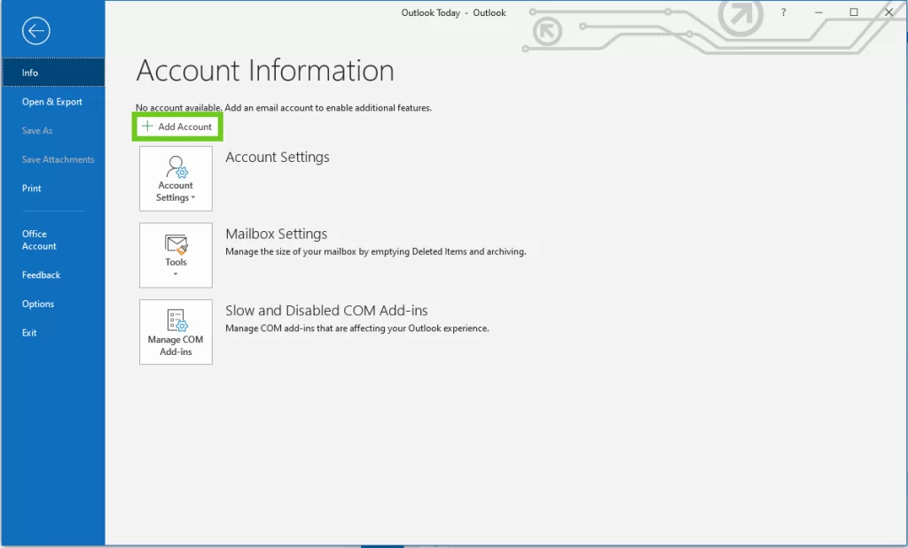 Follow the steps below to set up your Webster-hosted email address in Microsoft Outlook 2016 / 365.