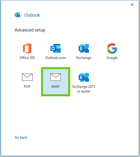 Choose an account type – IMAP or POP. We suggest you select IMAP.